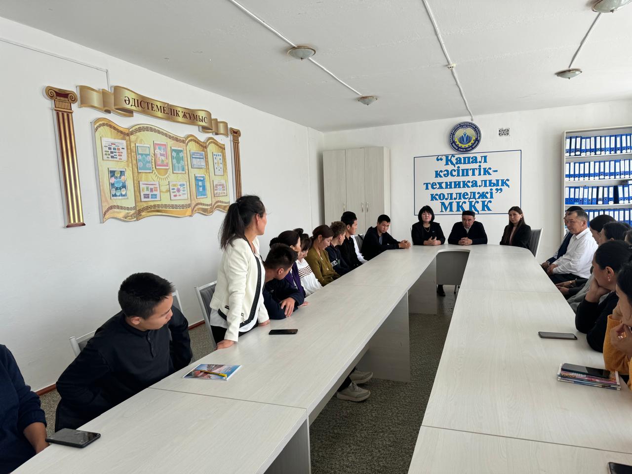 «Қапал кәсіптік-техникалық колледжінде Қапал ауылдық округі әкімінің жастар ісі жөніндегі әдіскер нұсқаушы Ә.Ашимова колледж студенттері және ауыл имамы Е. Ордабаевтың қатысуымен «Дін және адамгершілік» атты рухани-танымдық кездесу өтті. Мақсаты: жастарға экстремизм мен терроризм туралы түсінік беру, деструиктивті жалған діни ағымдардан сақтандыру, жастарымыздың санасын қауыпті ақпараттан сақтау.